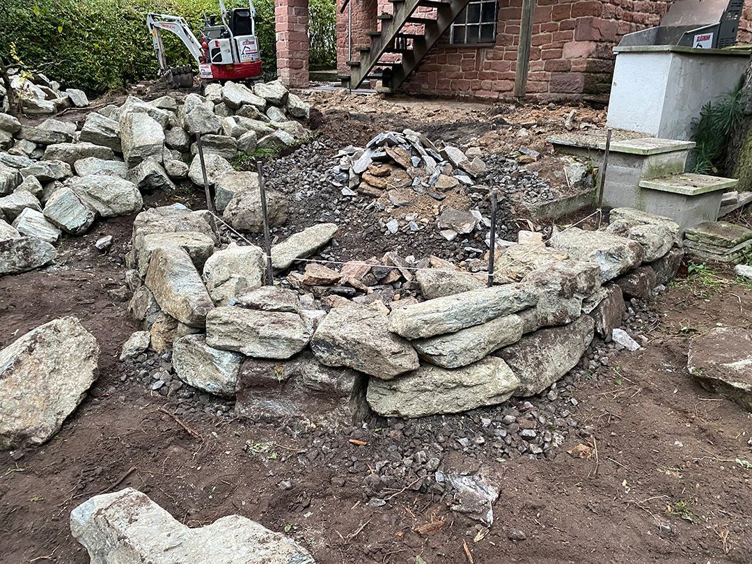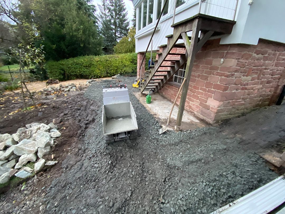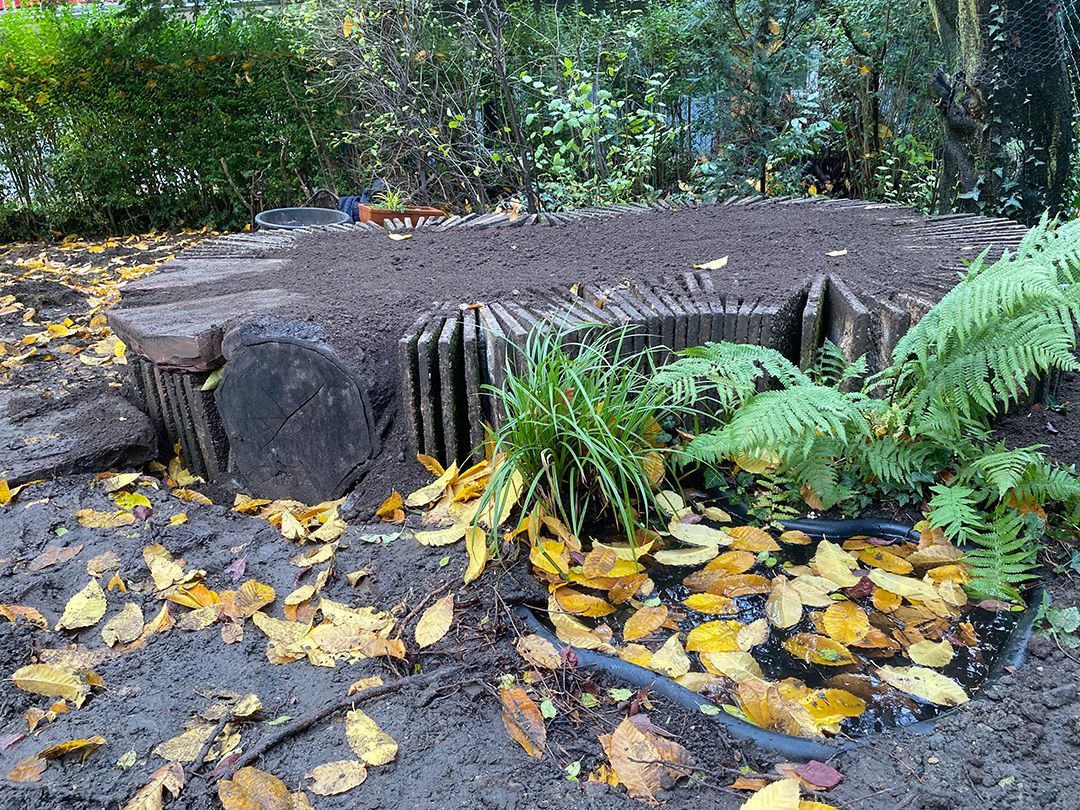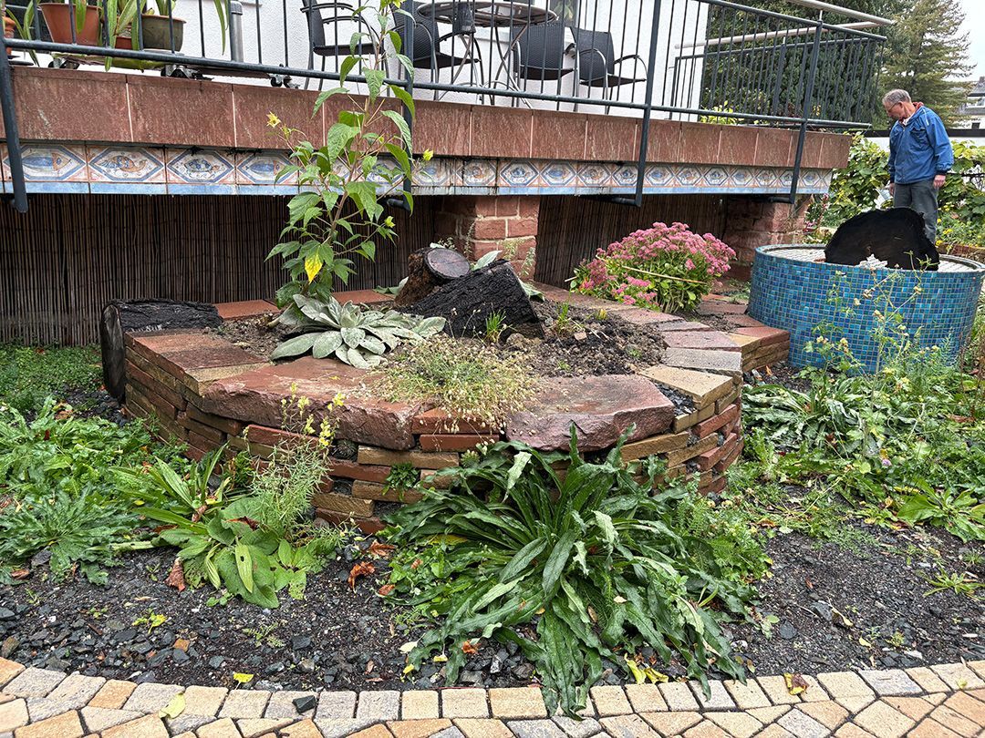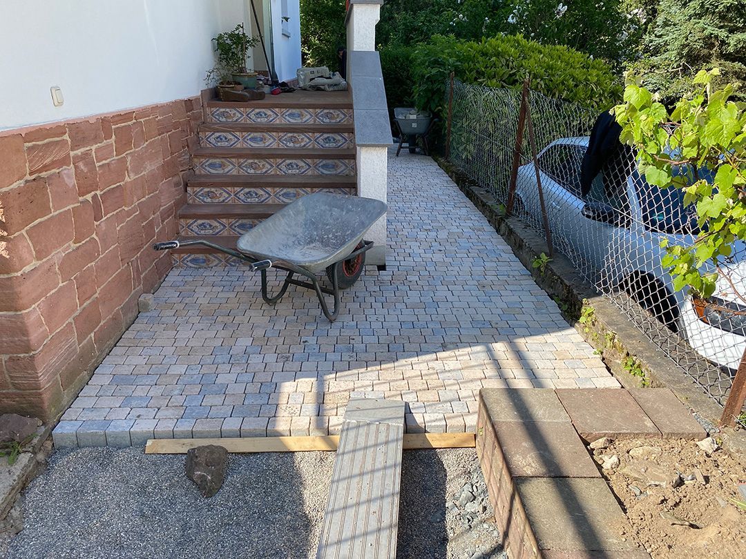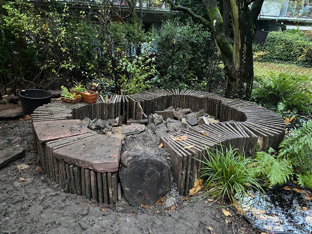 Alle Wege sollten erneuert werden und der Garten pflegeleichter sein. Eine Herausfordung bei über 200qm Betonflächen. Um den ökologischen Fußabdruck dennoch etwas zu senken sollte möglichst alles davon wiederverwendet werden. Umgesetzt in diversen Hochbeeten, gefüllt mit dem vorhandenen Unterbau entstehen diverse unkrautfreie Flächen für Saum, schattige nährstoffreiche und sonnige Magerbeete, Sand-Mager-Rasen, Sandarium bis hin zum Gemüse-Hochbeet. Schon nach einem Sommer sind erste Erfolge zu erkennen.